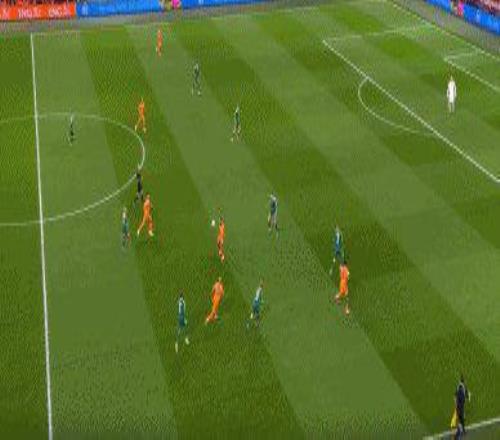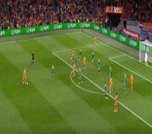 16’荷兰前场断球,德容直塞,赖因德斯直面门将射入远角,荷兰1比0。