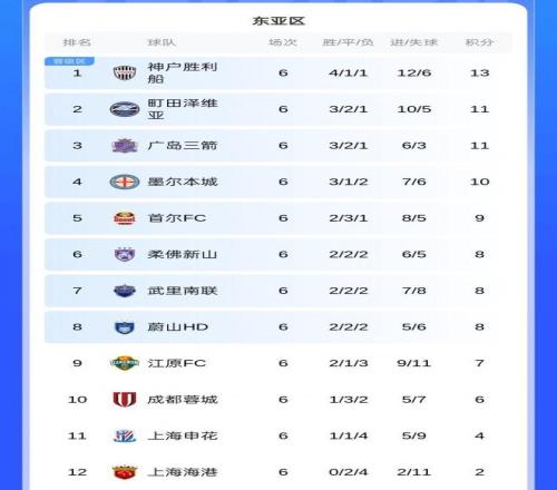 前一个比赛日,两支中超球队上海海港、成都蓉城提前出战,最终上海海港客场0-0打平柔佛新山,成都蓉城客场2-2打平神户胜利船,都没有输球。