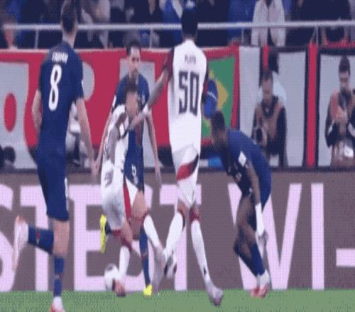 上半场补时阶段,姆巴佩无球过人足够精彩,之后的传中被防守球员挡进自家球门。